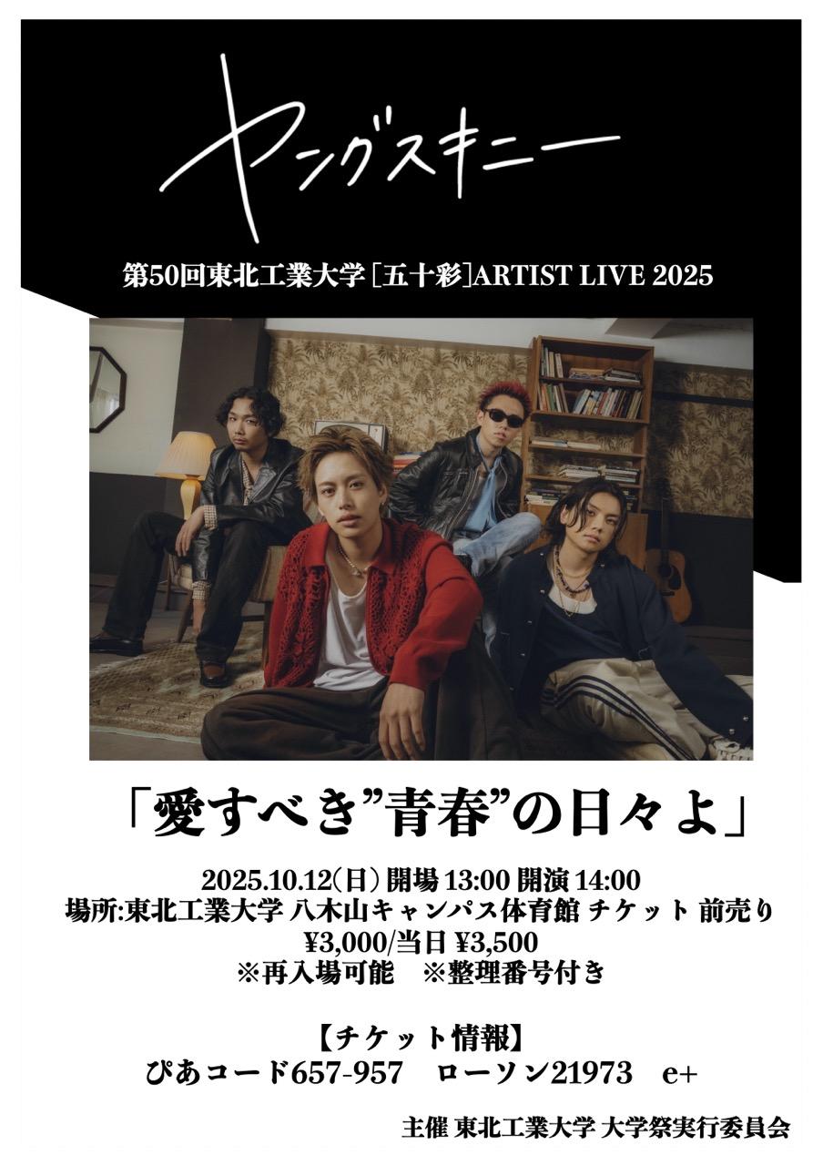 [宮城]第50回東北工業大学学園祭 ARTIST LIVE 2025 ヤングスキニー「愛すべき"青春"の日々よ」