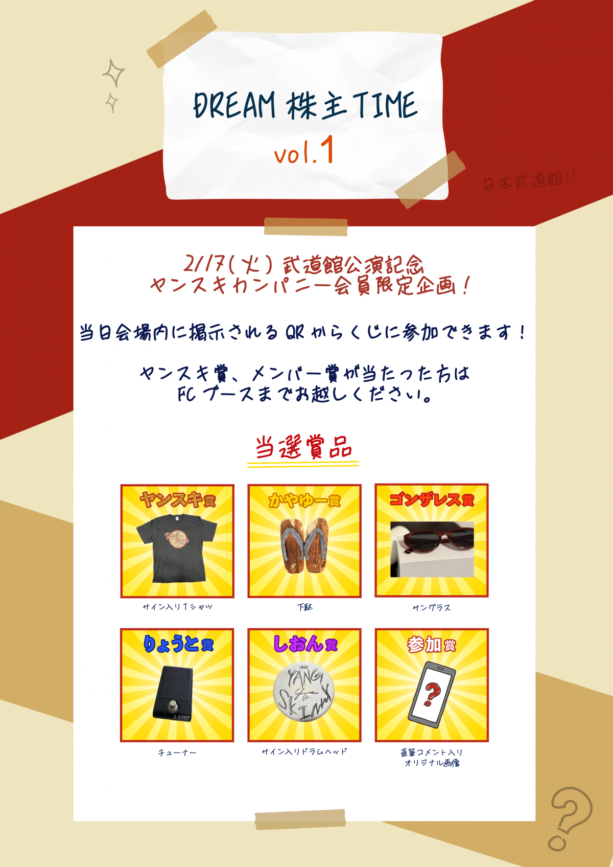 ヤンスキカンパニー会員限定「いつか僕は誰もが羨むバンドになってやる日本武道館」でFC限定オンラインくじ『DREAM 株主 TIME vol.1』実施決定!