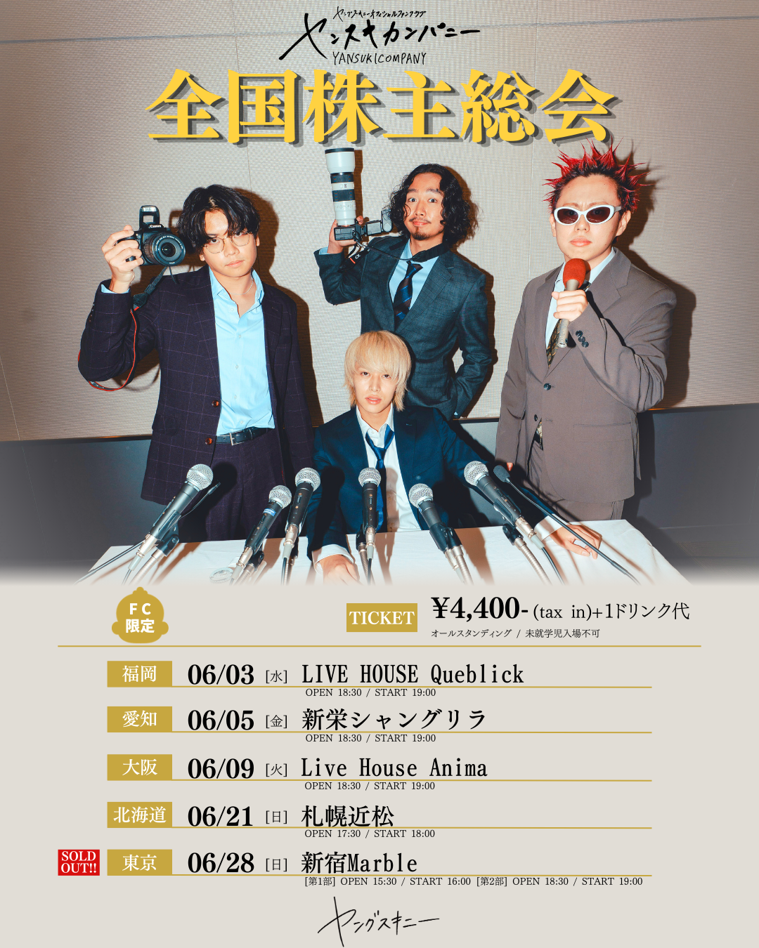 ファンクラブ限定全国ツアー「ヤンスキカンパニー全国株主総会」チケット先着販売の実施が決定!