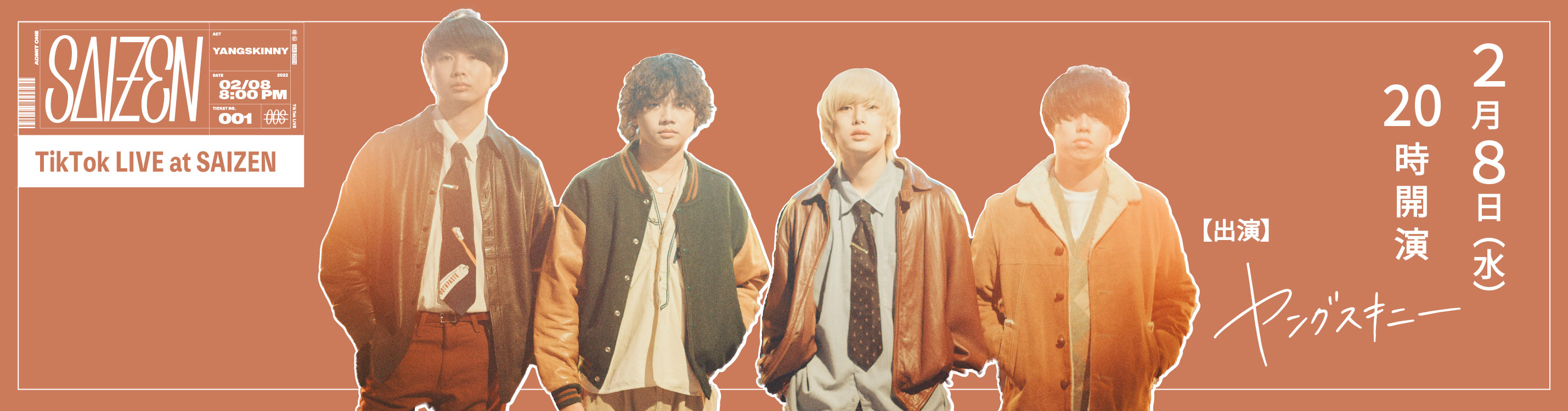 2月8日(水)20時~「ヤングスキニー TikTok LIVE at SAIZEN」でライブ生配信の実施が決定!